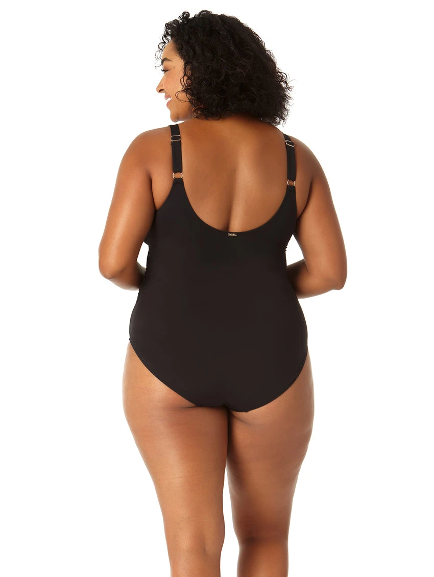 From Anne Cole, this vibrant swimsuit, detailed with a plunge mesh neckline and open back detail, is perfect for your next vacation.