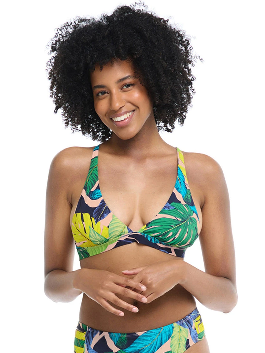 Body Glove’s fixed-triangle Freya top is good vibes only. Designed with a plunging neckline and comfy under-bust panel, this swoon-worthy piece can be worn two ways around back: with criss-crossed straps, or simply side-by-side. Remove Freya’s soft cups for a more freeform fit or keep them in for a touch of shape and support.