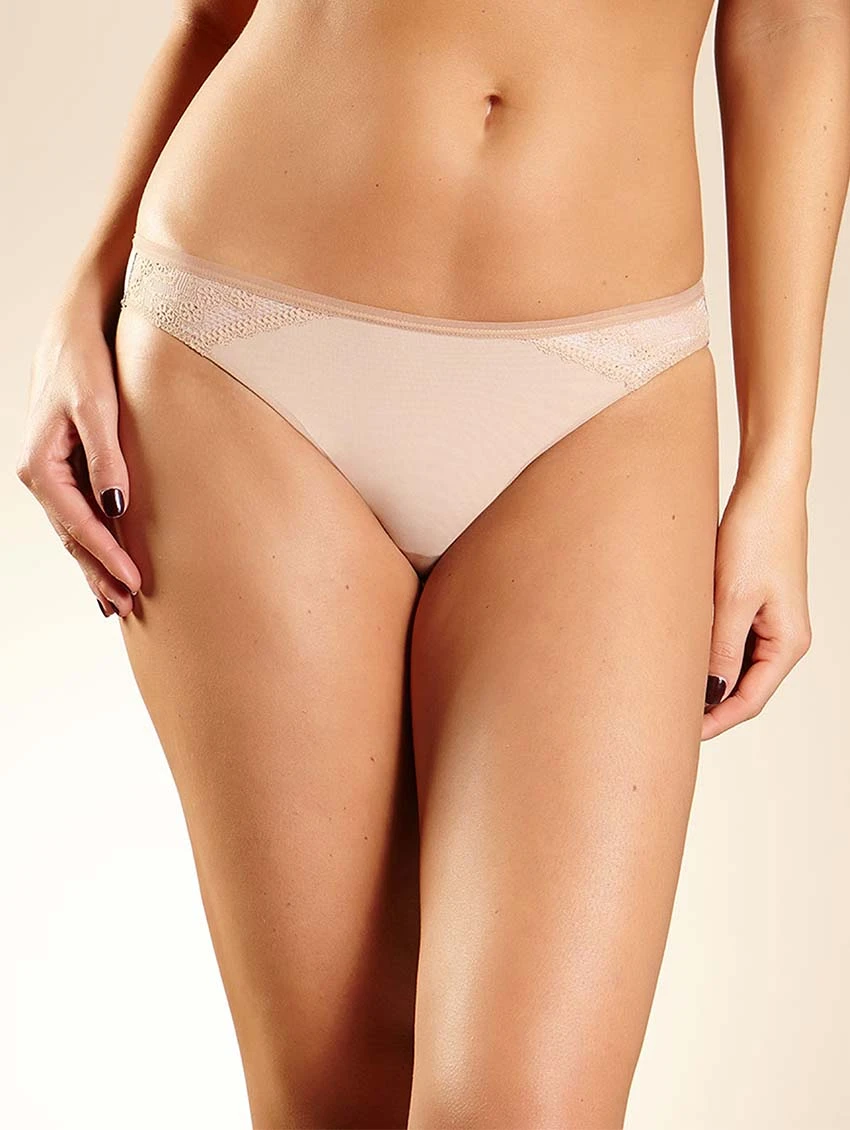 A full rear coverage style, the fabrics constructing this piece are smooth as silk. The front panels feature a unique lace exclusive to Chantelle. The nude portion is slightly sheer for a sensual look.