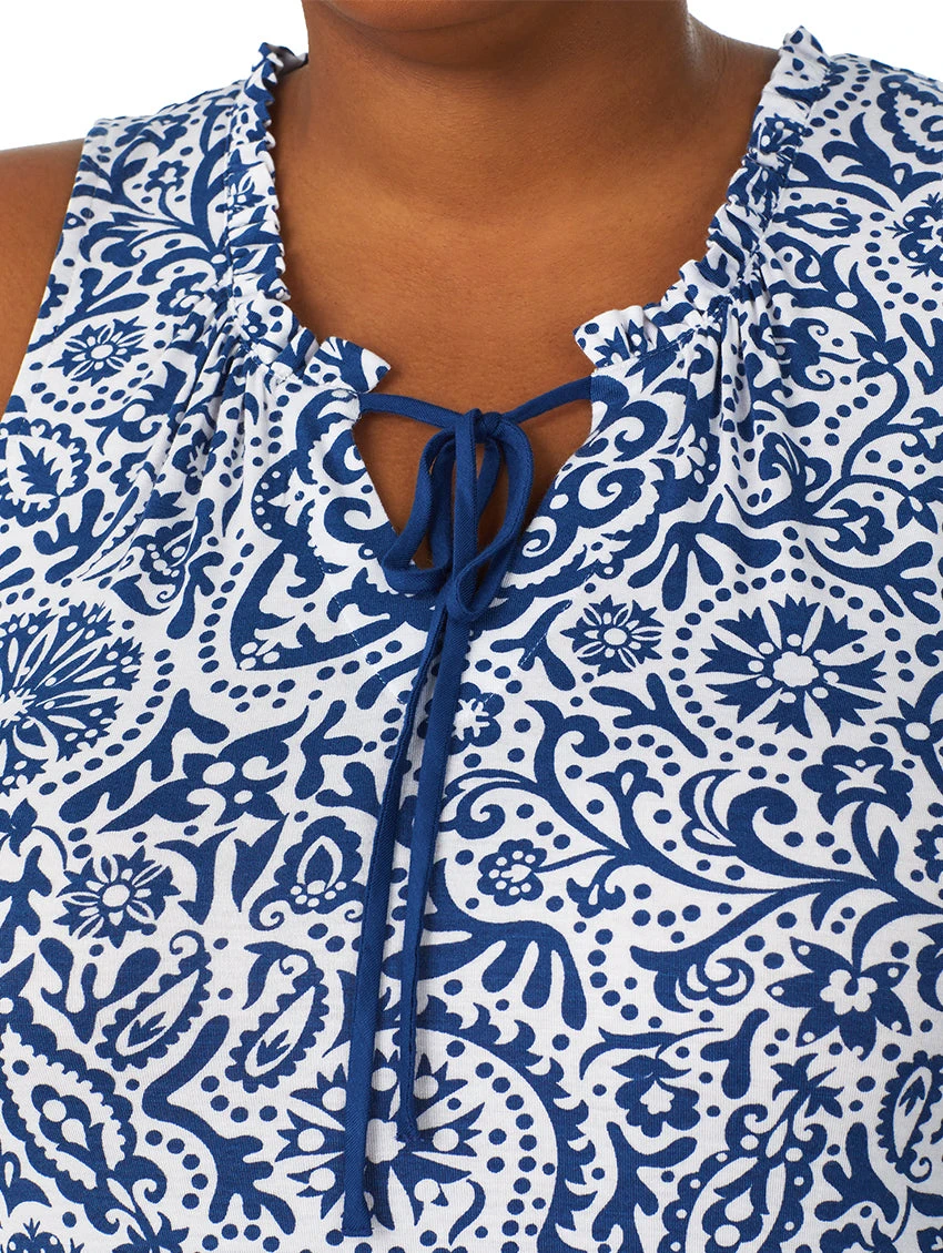 The Ellen Tracy Sleeveless Midi Gown is blessedly lightweight for the upcoming hot weather. This sleeveless night gown has a fun Greek tile inspired pattern to get you dreaming of your own Mama Mia moment.