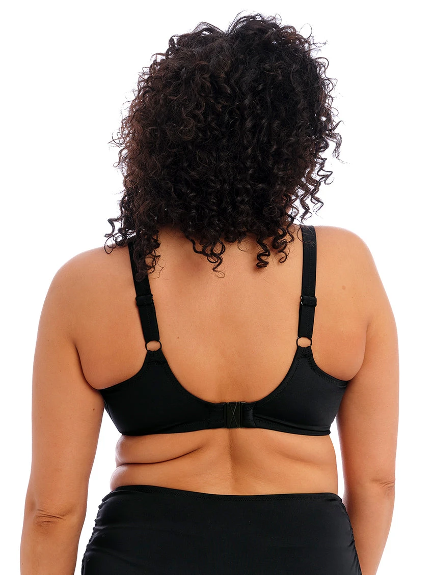 An Elomi Swim must-have! Uncover the Plain Sailing Plunge Bikini Top. Offering the same beloved fit as an Elomi Bra for ultimate support, and adjustable shoulder straps for all day comfort. A plain Black colourway allows for endless choices when it comes to which bottoms you wear, or consider going for the matching swim briefs!