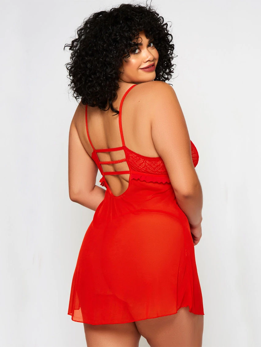 Feel extra spicy in the Daisy Babydoll from iCollection. This piece features a red hot colourway along with soft galloon lace cups, frilly underbust, and sheer mesh skirt. The adjustable straps and elastic back straps mean this babydoll will stay comfortable, however long you wear it.