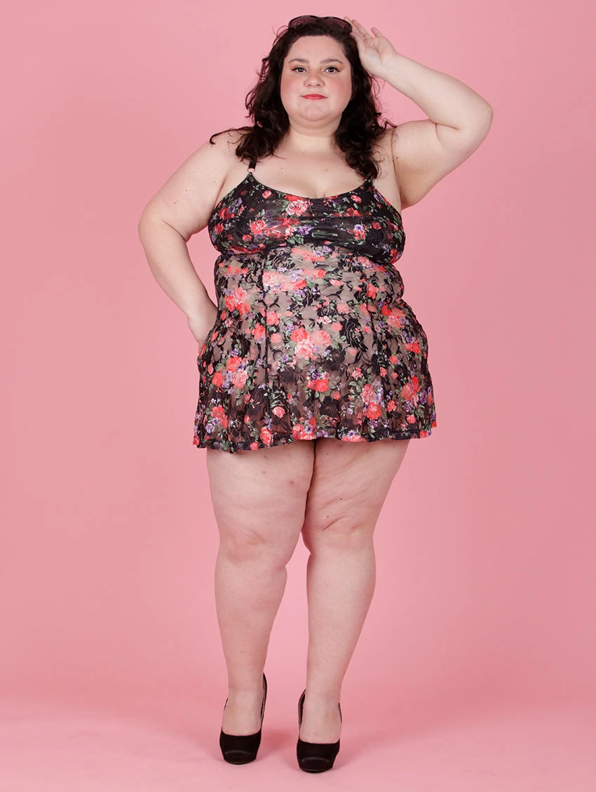 - Sheer floral lace chemise