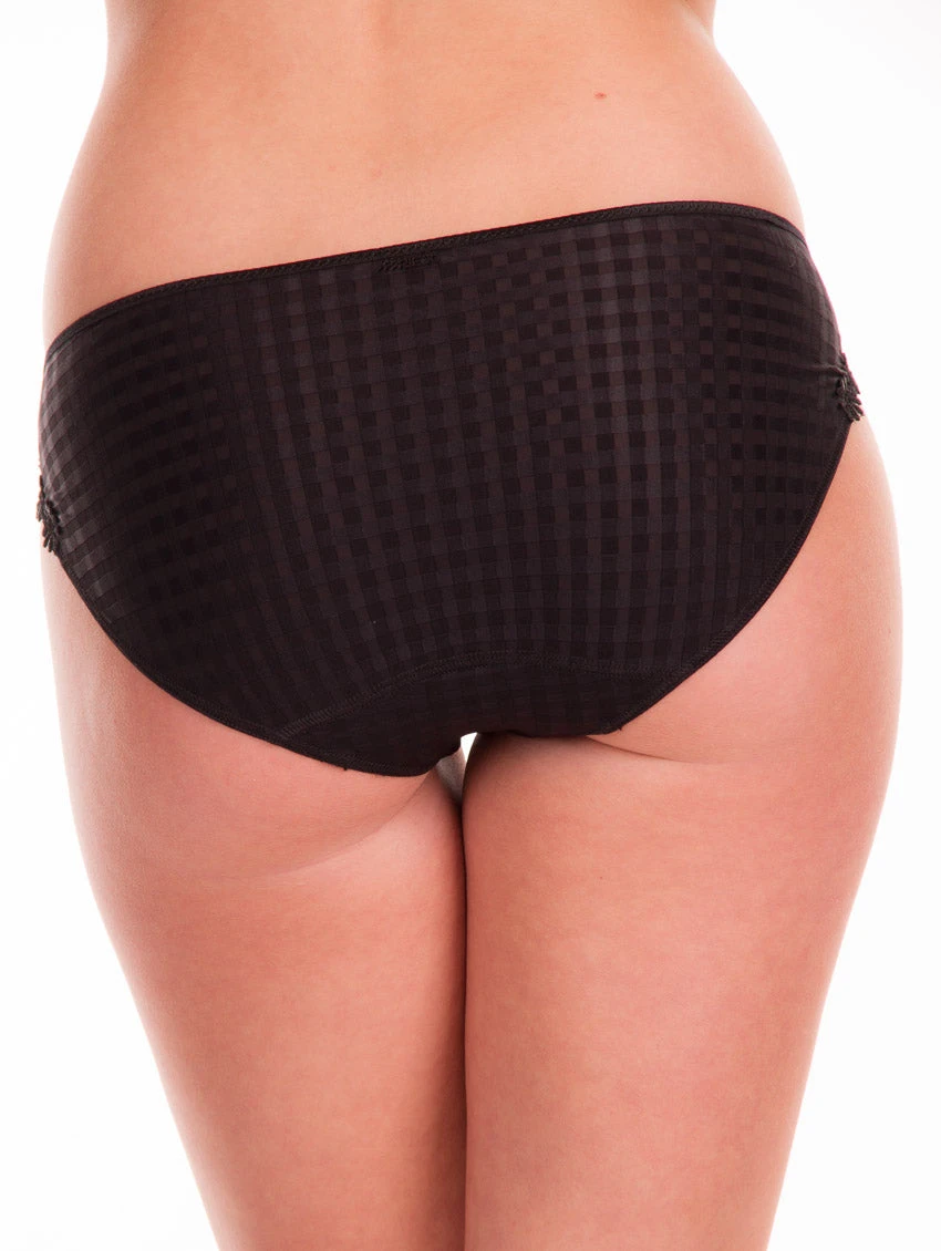 From the popular and classic Avero line, this beautiful bikini brief features a flirty, high-cut side with embroidered daisy chain accents, while maintaining full coverage in the back. Signature checkerboard print microfiber, and a subtly shimmering elastic trim complete this matching panty style.