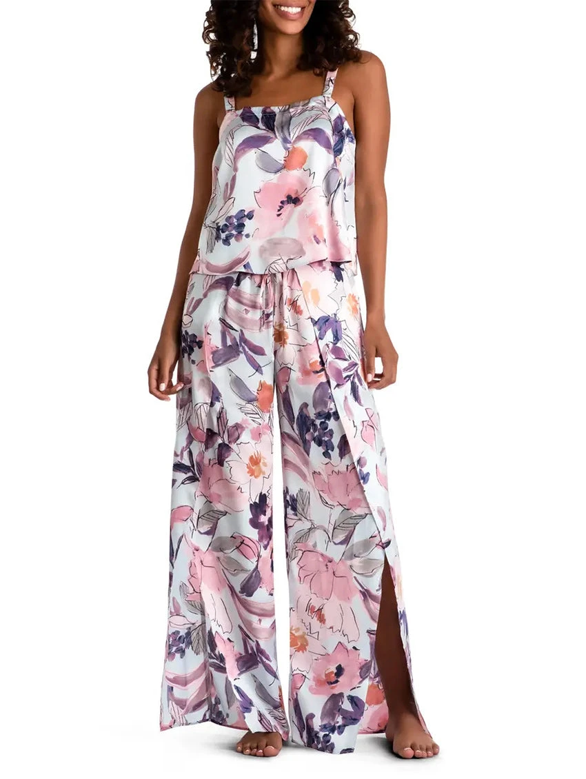 Meet your new favorite versatile day or night wear in the Midnight Bakery Shea Pant Set. Featuring watercolour florals, adjustable straps, and flowy pants with a tie waist. Wear as a set or mix and match with your collection.