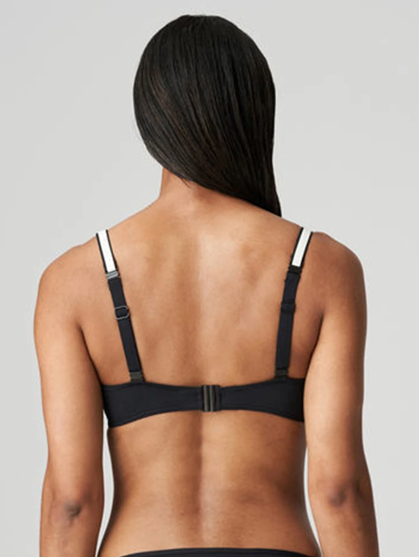 This simple and stylish bikini top has graphic lines that perfectly accentuates your cleavage. Featuring luxurious gold details and padded cups to give you a great shape and lift.