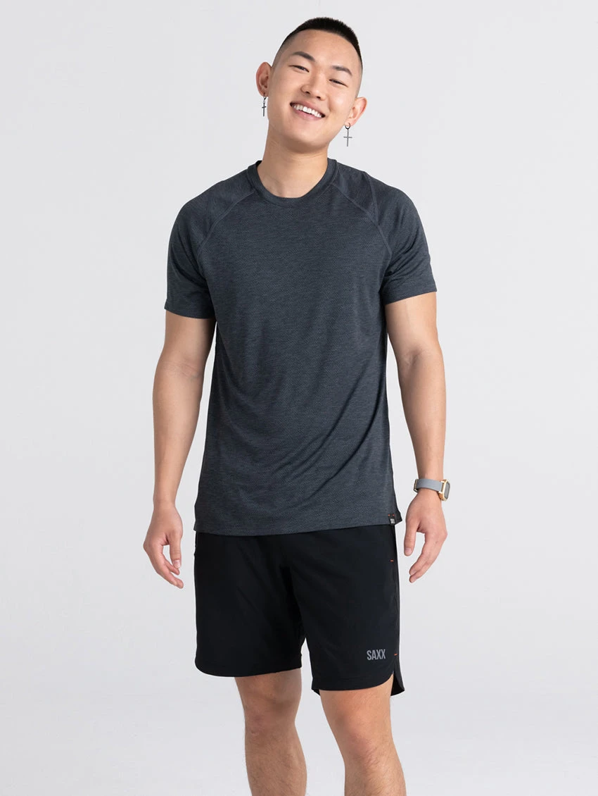Any and all forms of physical activity, from jumping jacks to jazzercise. Let your body breathe with this moisture-wicking workout tee.