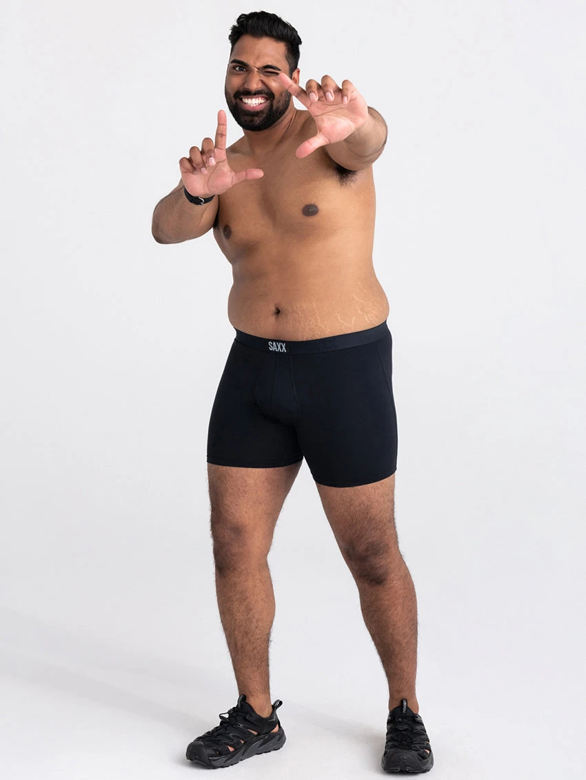Meet SAXX Ultra. Similar to the best-selling Vibe collection, but with a more relaxed fit and easy access fly. This everyday boxer brief is made from moisture-wicking, breathable viscose fabric that delivers comfort for red-eye flights and all-day meetings.